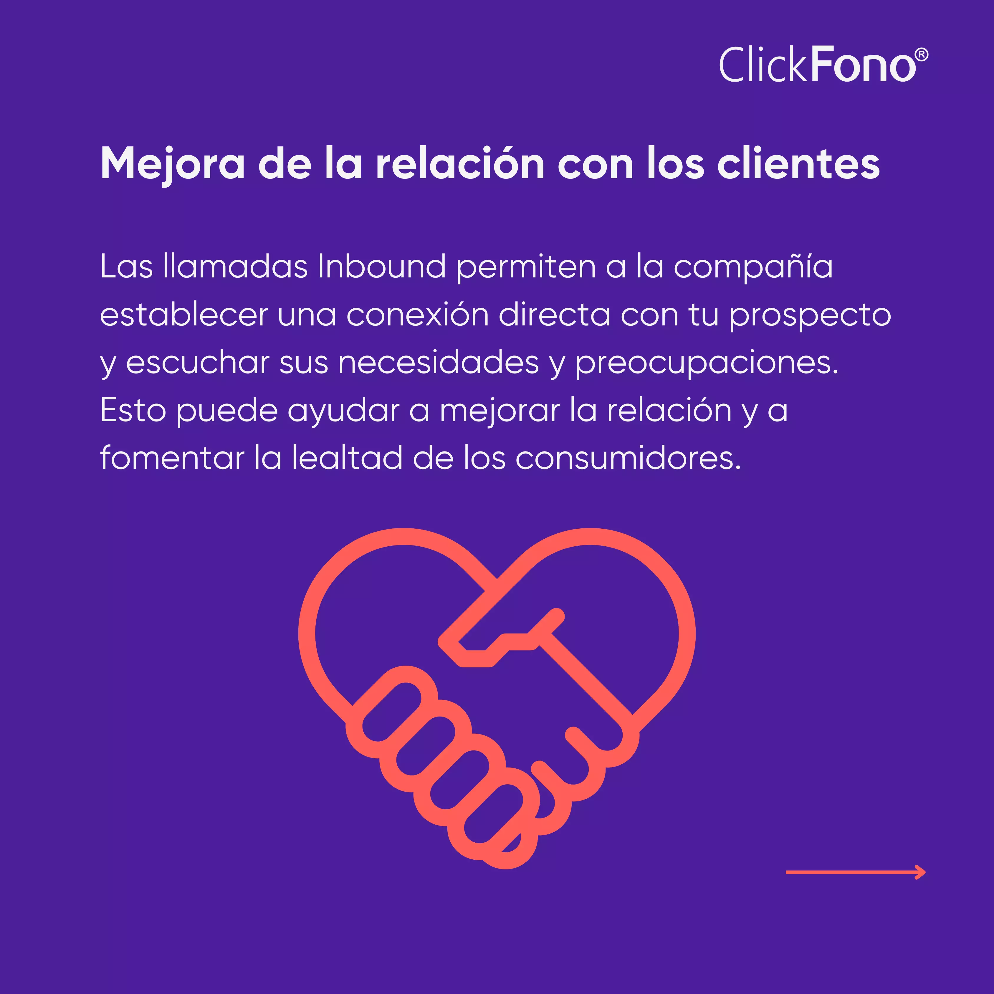 Las conversaciones telefónicas Inbound permiten a la compañía establecer una relación directa con tu prospecto y escuchar sus necesidades y preocupaciones. Esto puede ayudar a mejorar la relación y a fomentar la lealtad de los consumidores.