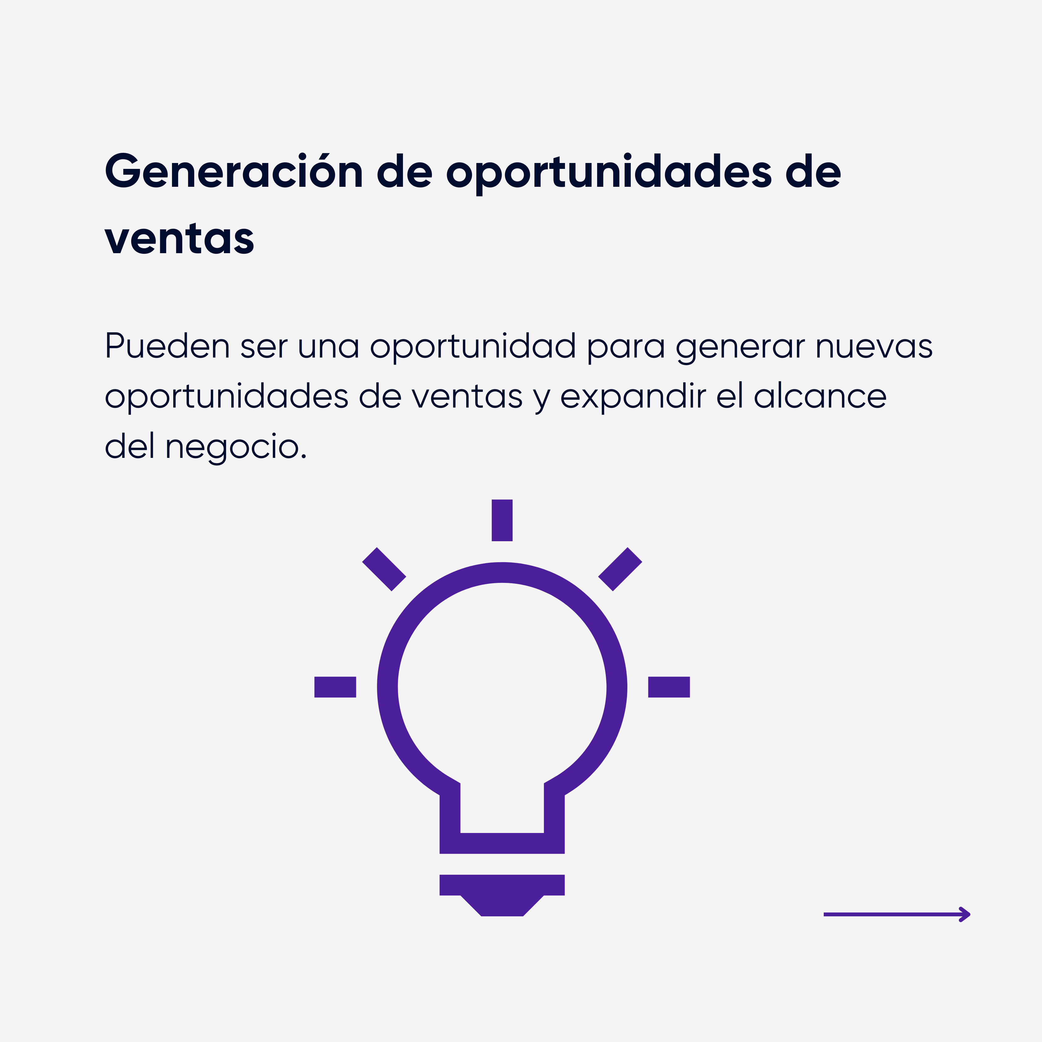 Pueden ser una oportunidad para generar nuevas oportunidades de ventas y expandir el alcance del negocio.