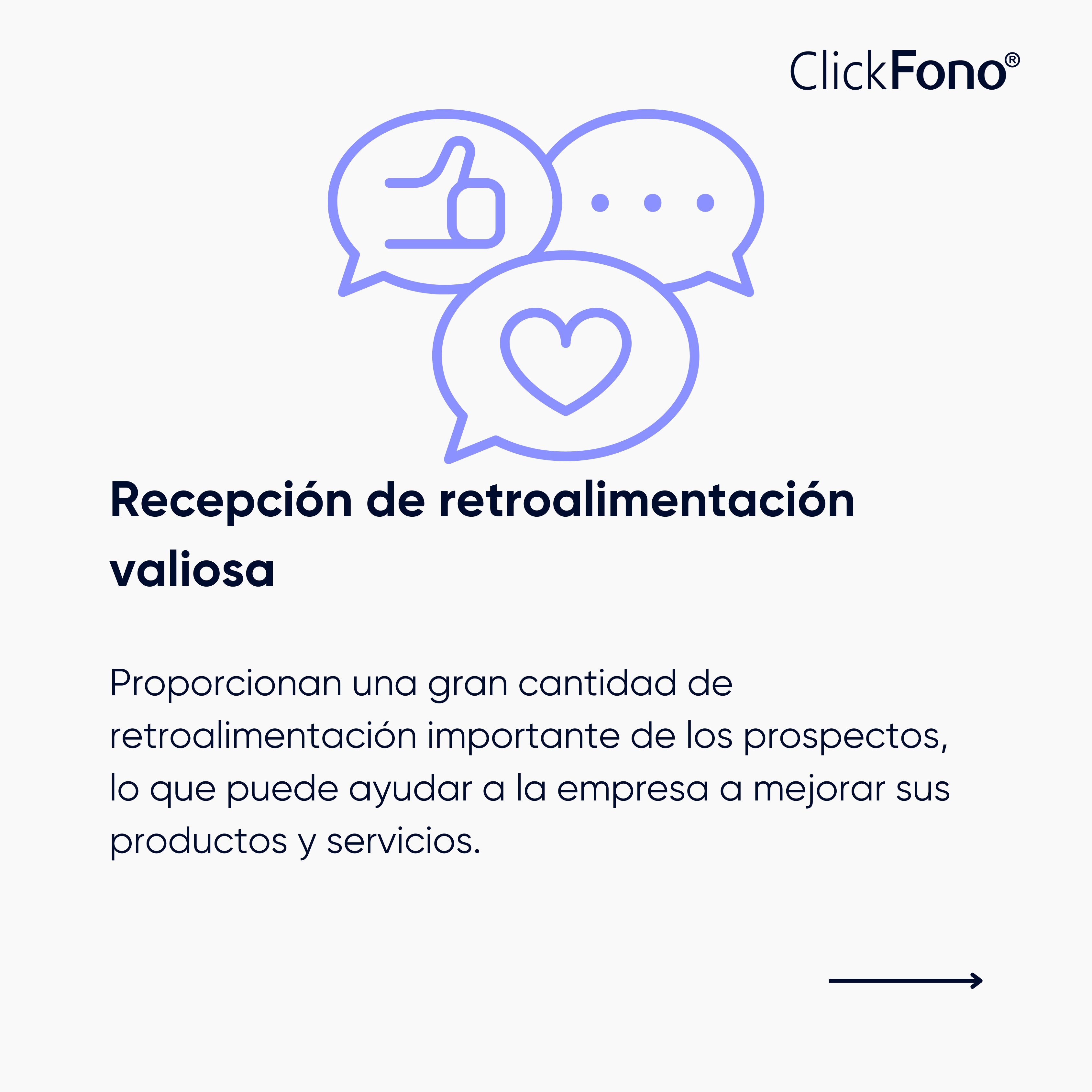 Proporcionan una gran cantidad de retroalimentación importante de los prospectos, lo que puede ayudar al negocio a mejorar sus productos y servicios.